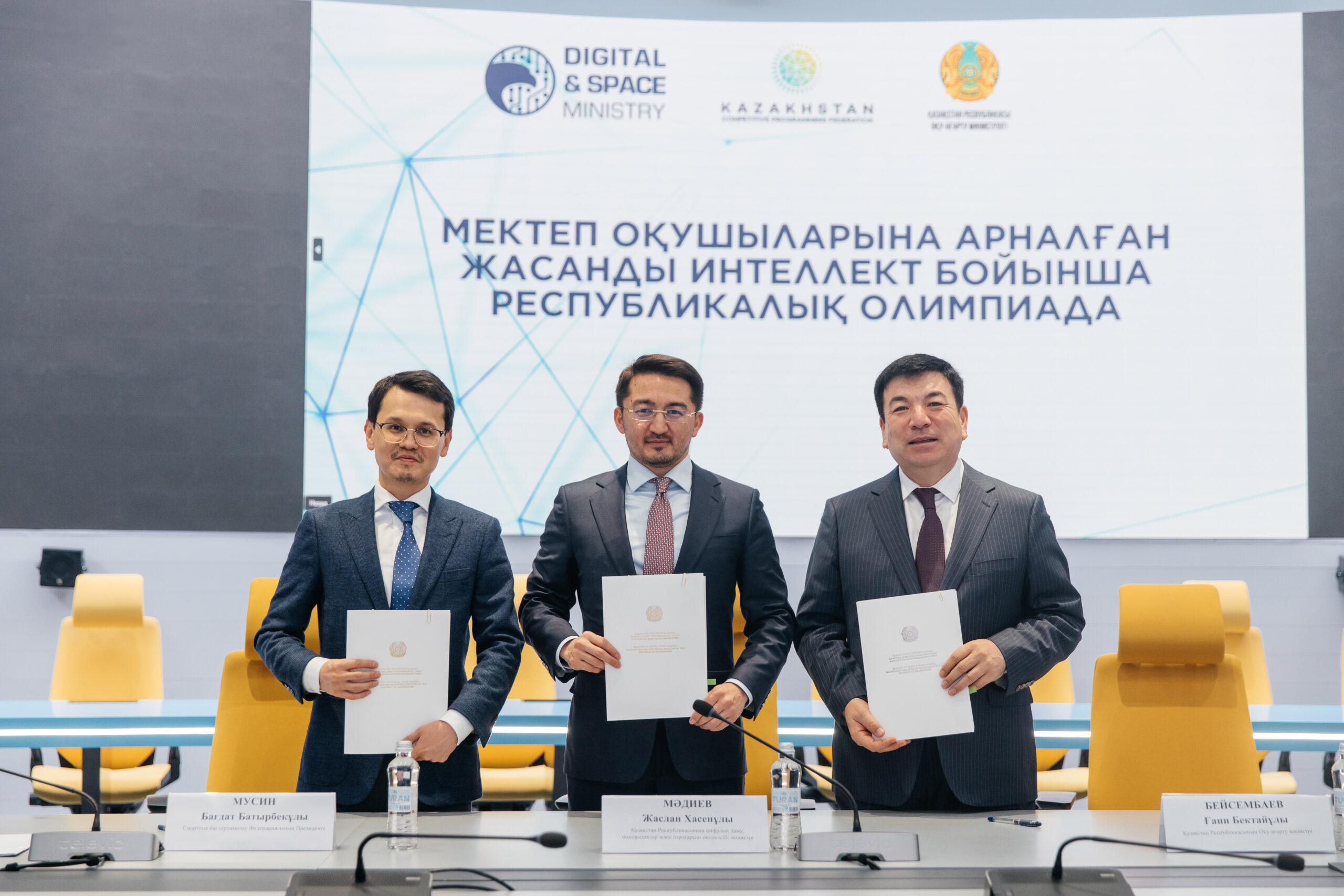 В Минцифры состоялась знаковая встреча, на которой Министр цифровизации Мадиев Жаслан Хасенович, Министр просвещения Бейсембаев Гани Бектаевич и Глава Федерации по спортивному программированию Мусин Багдат Батырбекович обсудили шаги для развития образования в сфере искусственного интеллекта.
