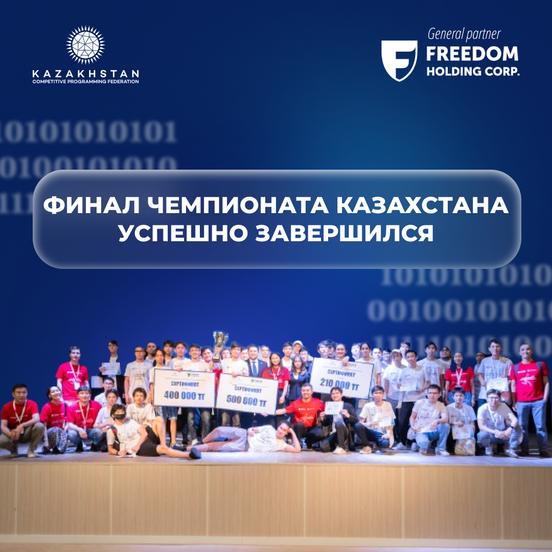 Искренняя благодарность Freedom Holding Corp. за значимый вклад в Чемпионат Казахстана и в развитие спортивного программирования, а также Astana IT University за предоставление площадки для соревнований.