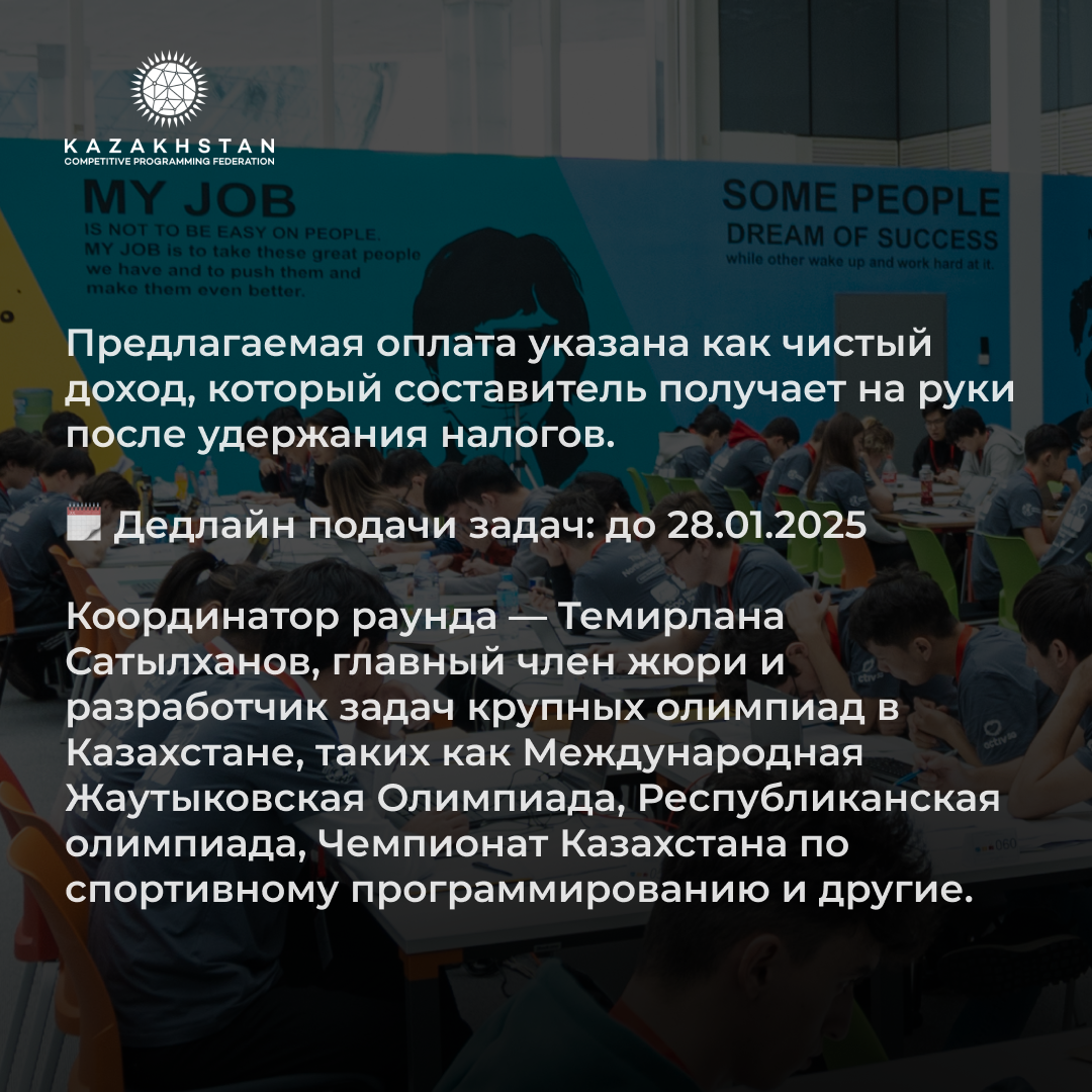 Мы ищем талантливых авторов задач, готовых делиться своими идеями и создавать интересные, разнообразные задания для соревнований по спортивному программированию.
